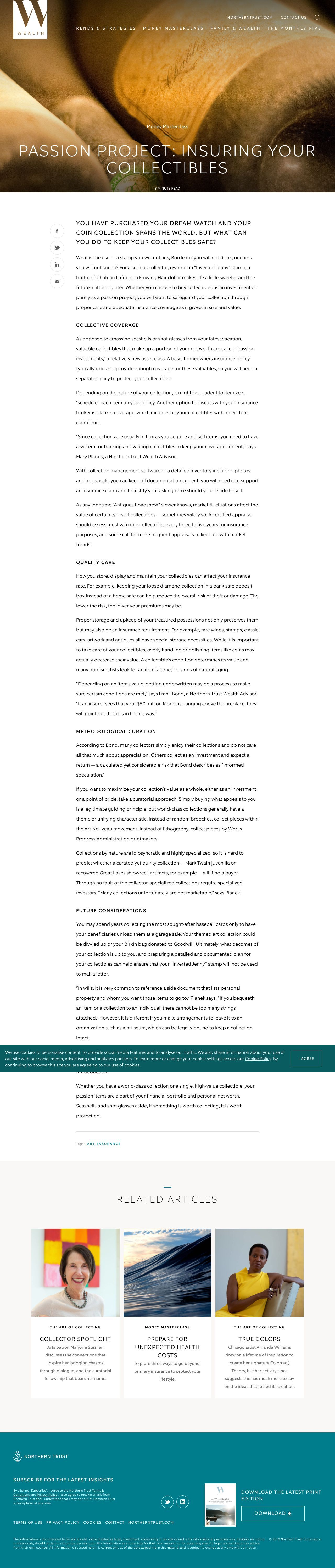 Northern Trust Wealth • January 20, 2020 Passion Project: Insuring Your Collectibles You have purchased your dream watch and your coin collection spans the world. But what can you do to keep your collectibles safe?