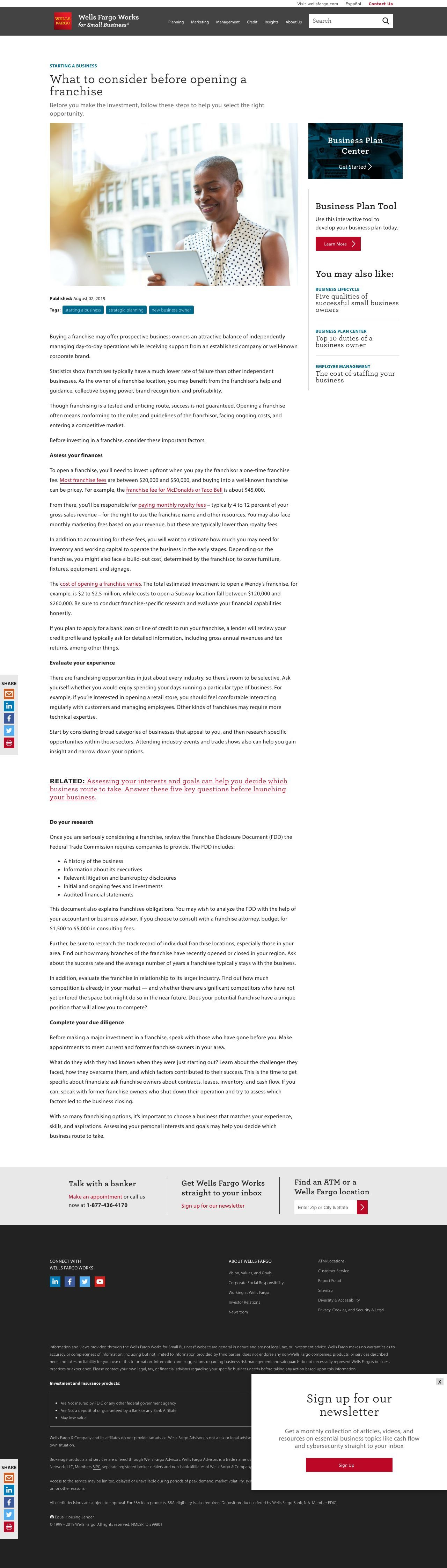 Wells Fargo Works for Small Business • January 20, 2020 What to Consider Before Opening a Franchise Before you make the investment, follow these steps to help you select the right opportunity.