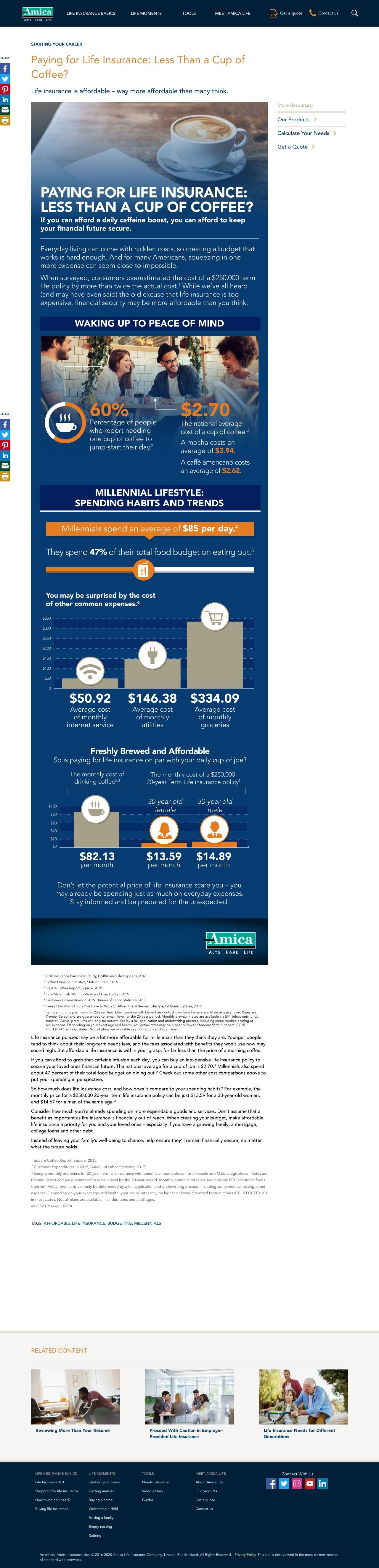 Amica Life • January 20, 2020 Paying for Life Insurance: Less Than a Cup of Coffee? Life insurance is affordable – way more affordable than many think.