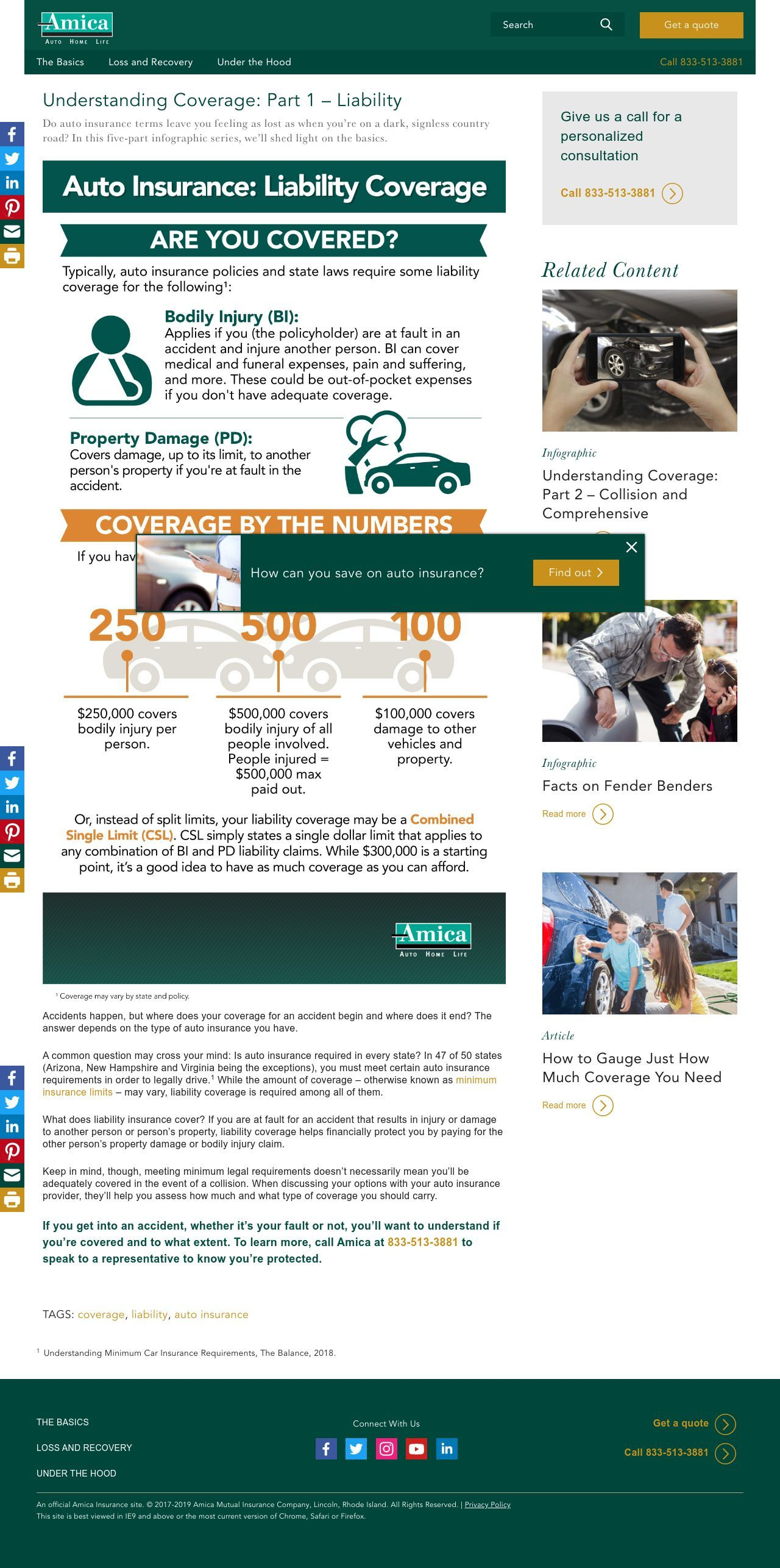 Amica Auto • January 20, 2020 Understanding Coverage: Part 1 – Liability Do auto insurance terms leave you feeling as lost as when you're on a dark, signless country road? In this infographic series, we'll shed light on the basics.